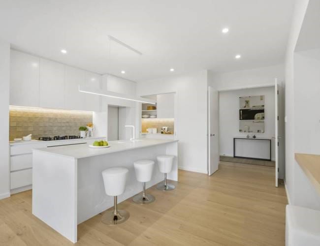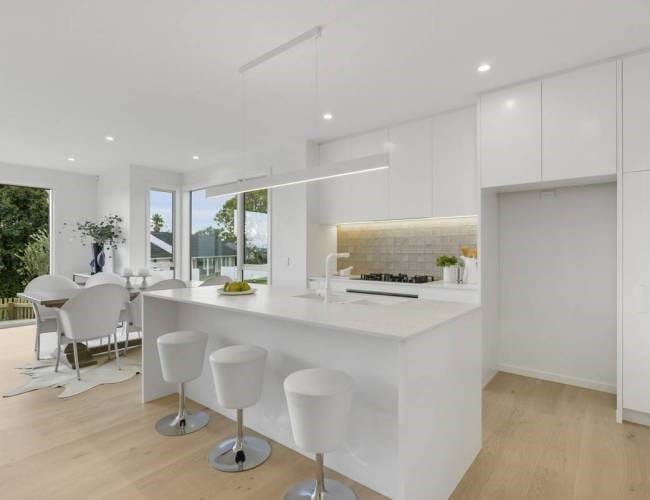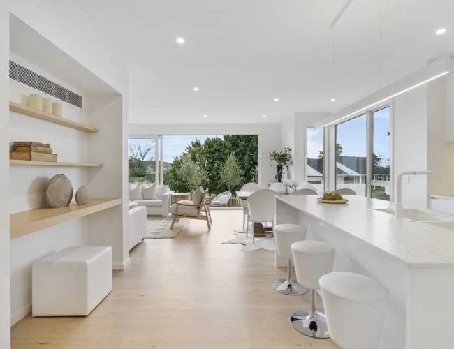 A wooden flooring installation completed by our team of experts into this beautiful Sunnyhills home build by Taylor Construction. This is Kährs Oak Brighton engineered wood flooring.